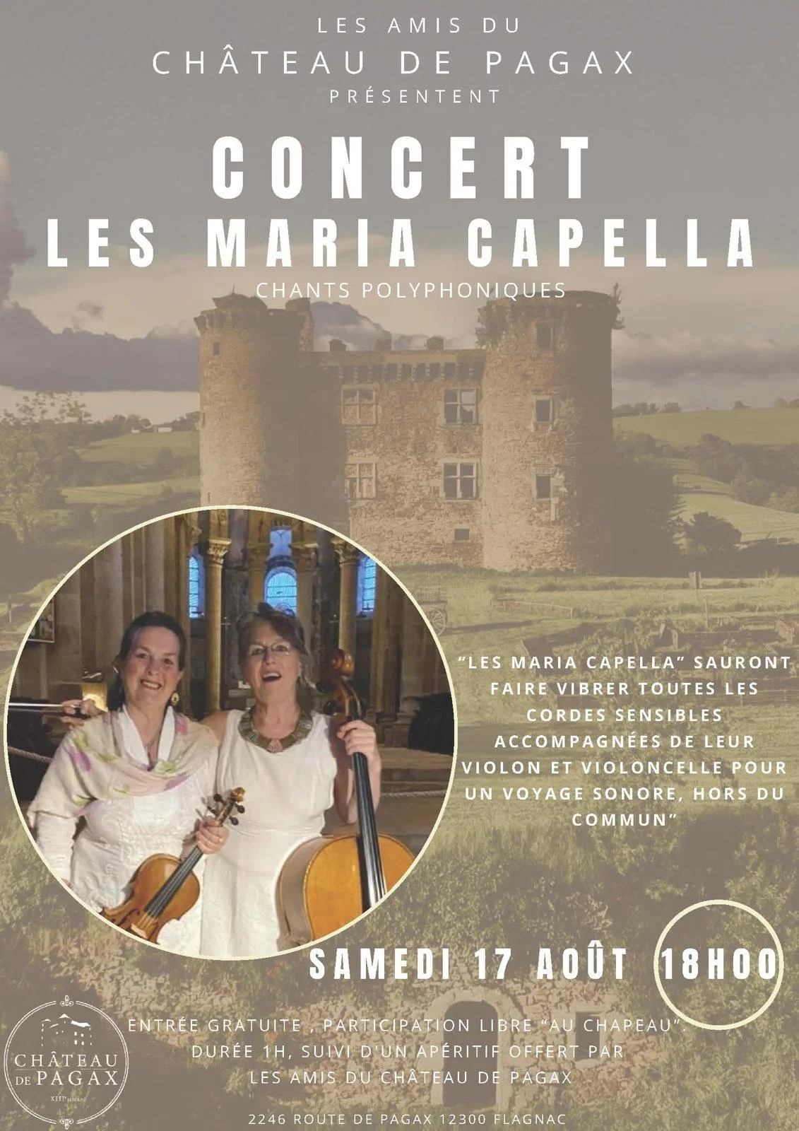 Parution dans LA DÉPÊCHE:https://www.ladepeche.fr/2024/08/16/chateau-de-pagax-les-maria-capella-en-concert-samedi-12144299.php